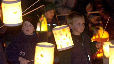 Der Umzug symbolisiert die Nächstenliebe des Heiligen Martin. Das Licht der Laterne steht für seine gute Tat und die Hoffnung.